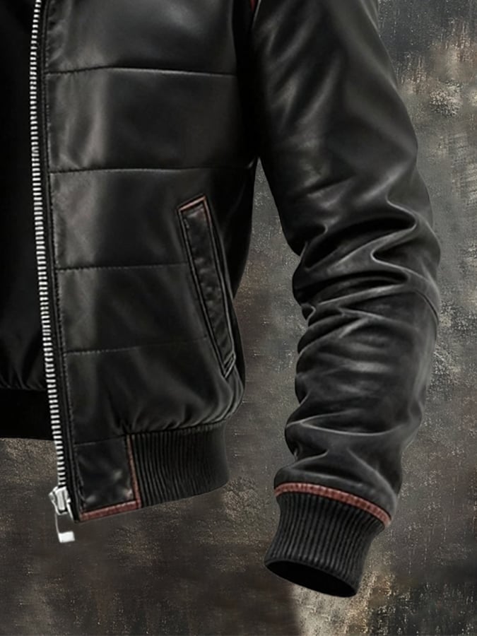 Herren Retro Leder Steppjacke mit Baumwollfutter, warmem Reißverschluss und Reißverschluss
