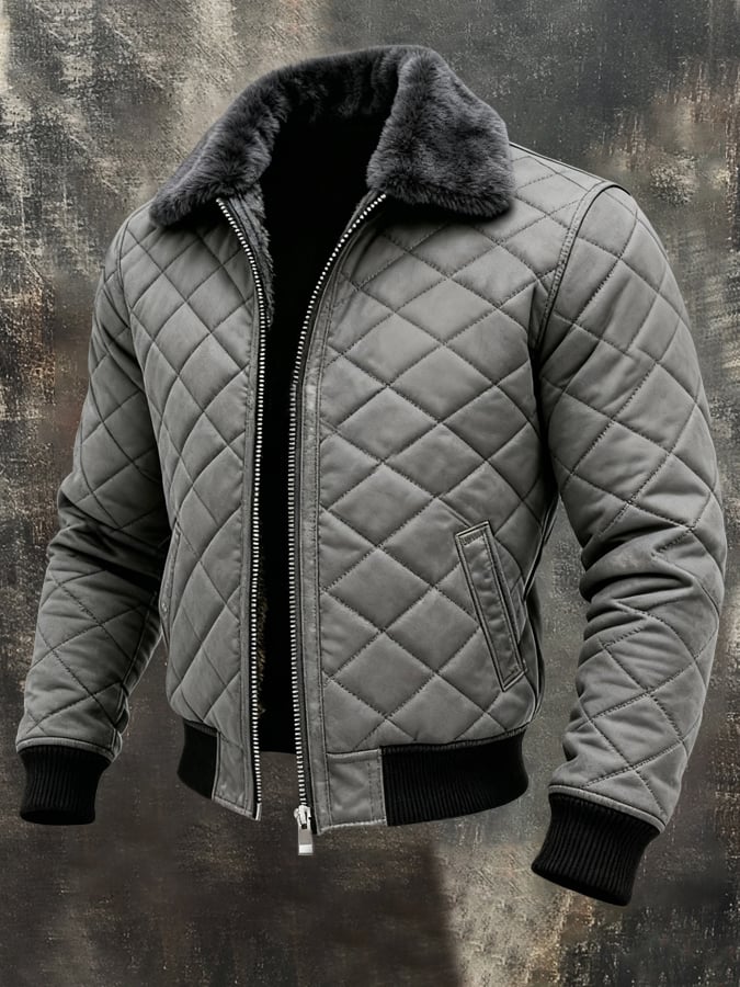 Herren-Retro-Outdoorjacke mit warmem Pelzkragen und Reißverschluss