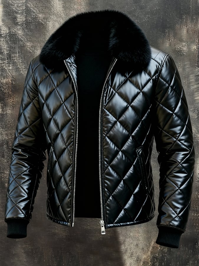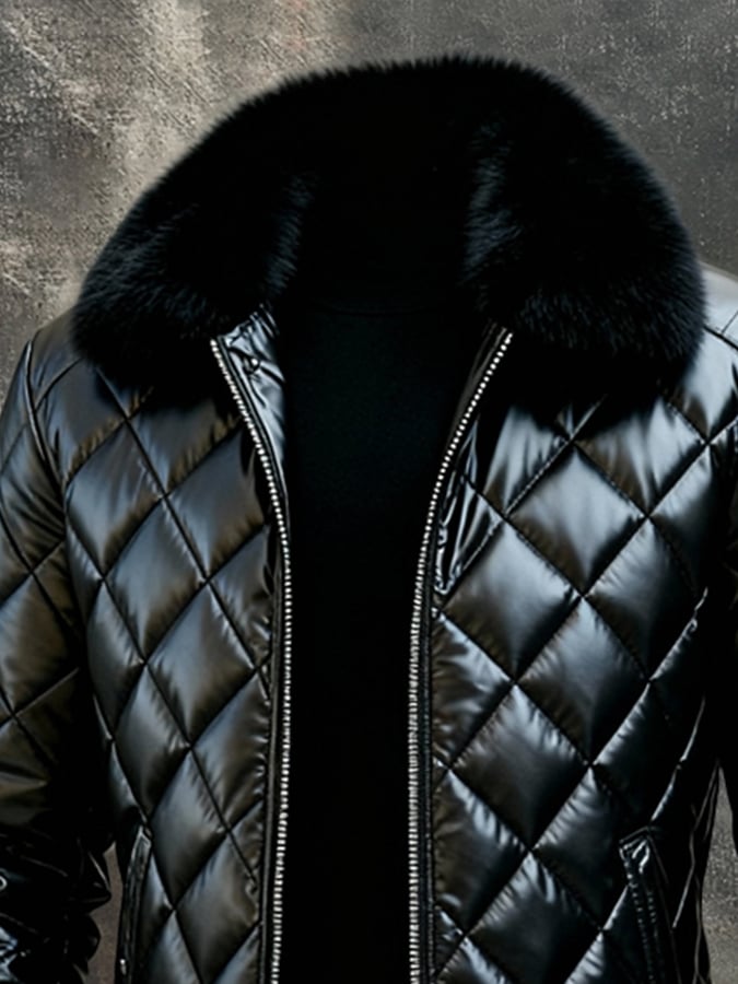 Herren-Retro-Outdoorjacke mit warmem Pelzkragen und Reißverschluss