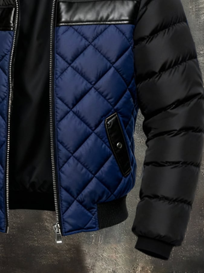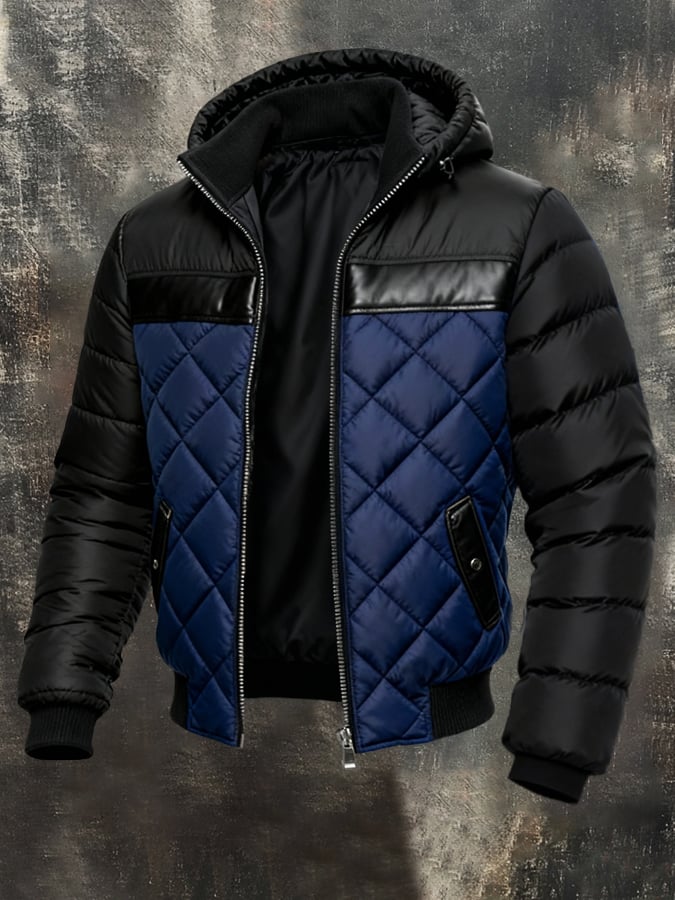 Herren Retro Warm Color Block Kapuzen-Reißverschluss Outdoor-Jacke Mantel