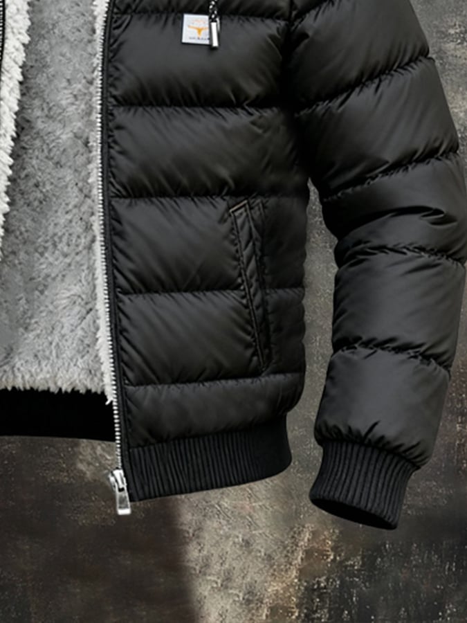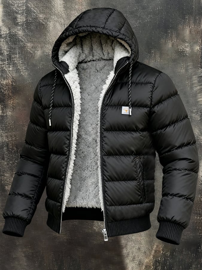 Herren Retro Warm Fleecegefütterte Outdoor-Kapuzenjacke Baumwollmantel