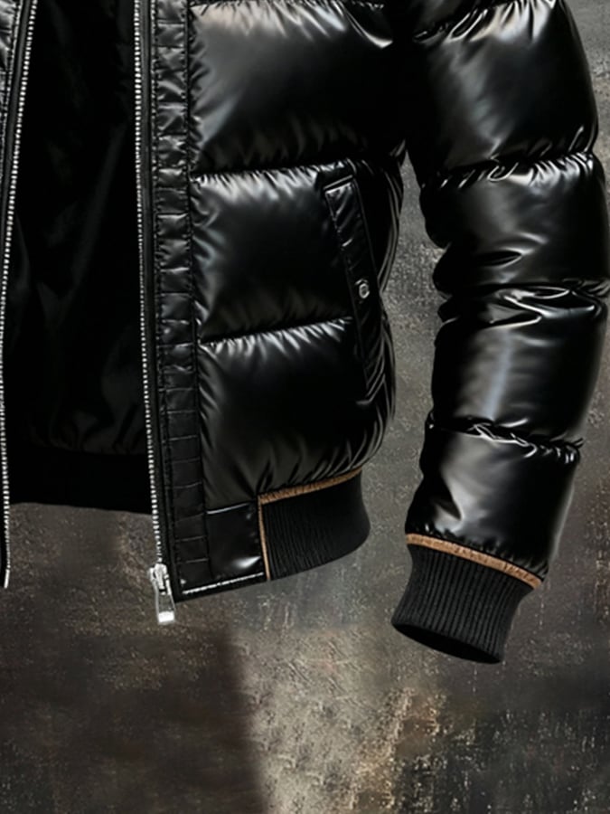 Herren Retro Warme Outdoor-Jacke mit Pelzkragen, Baumwollmantel
